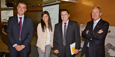 Maribel Guerrero, líder del equipo del GEM CAPV 2014, junto a representantes de la DFG, de la UPV/EHU y de Innobasque.