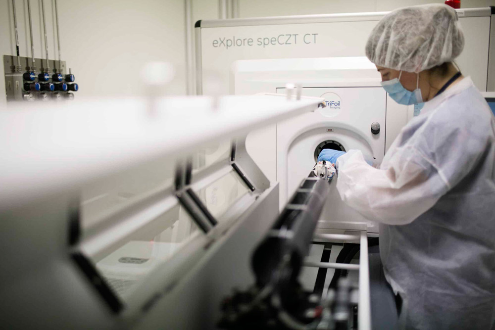 Entre otras actividades, la unidad de imagen permite hacer ensayos de nanomateriales in vivo. Así, en unos pocos metros de distancia están integrados el animalario, el ciclotrón que permite la creación de isótopos radioactivos, los reactores para trasladar esos isótopos a las moléculas o nanopartículas que se quieren estudiar y los equipos para hacer tomografía basada en radioquímica, rayos X y resonancia magnética.