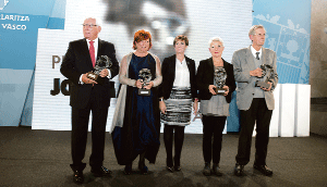 En concreto, y a propuesta de la Fundación Bidetik, este año se ha reconocido la trayectoria profesional de Jesús Bilbao, fundador de Maherholding; de Matilde Elexpuru, bilbaína, fundadora de la agencia Tisa (Traductores e Interpretes SA), cuya candidatura ha sido presentada por Cebek; de Maria Luisa Galardi, propuesta por Adegi y fundadora de la empresa Ondarreta; y del alavés Jesús Martínez-Bujanda, fundador de Bodegas Valdemar, que recibió su reconocimiento a propuesta de SEA Empresarios Alaveses.