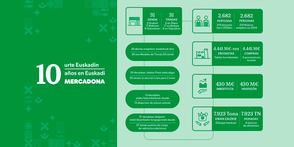 Mercadona cumple 10 años en Euskadi, con una inversión de más de 430 millones de euros