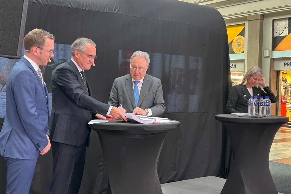 El diputado general de Álava, Ramiro González, y la alcaldesa de Vitoria-Gasteiz, Maider Etxebarria, durante la firma del acuerdo de colaboración para la puesta en marcha de la ‘Vitoria-Gasteiz Araba Film Comission’. Foto: Ayuntamiento de Vitoria-Gasteiz