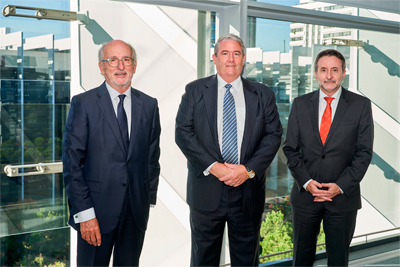 El presidente de Repsol, Antonio Brufau; el presidente y CEO de EIG, R. Blair Thomas; y el consejero delegado de Repsol, Josu Jon Imaz.