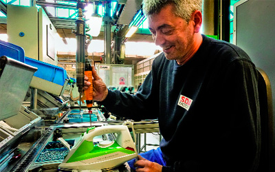 SDA Factory vuelve a producir de la mano de B&B Trends uno de los electrodomésticos más vendidos de la historia convirtiéndolo en un referente ecológico. SDA Factory (Vitoria-Gasteiz) ha fabricado un primer lote de 1.200 unidades de la plancha PV 3.500 Eco Performance 3.000 de marca Ufesa.