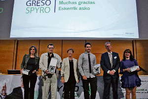 La consejera Arantxa Tapia y el director gerente de Spyro, Ricardo González, con los premiados en esta edición del congreso.