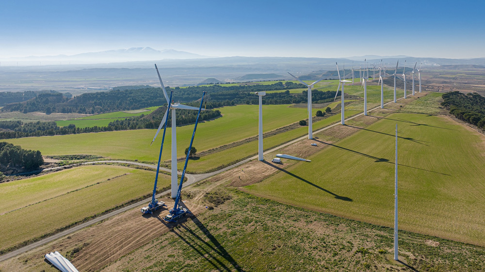 Parque eólico Montes de Cierzo de Statkraft, en Navarra, durante la fase de desmantelamiento de los anteriores aerogeneradores. Foto: Statkraft