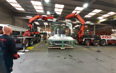 La soldadora ha sido desarrollada por la empresa italiana OCMI, la más puntera del sector, junto a técnicos expertos de Vicrila. Pesa cuarenta toneladas y ha sido transportada hasta Lamiako en cuatro camiones.