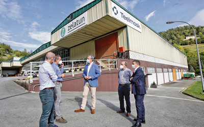 El diputado general de Gipuzkoa, Markel Olano, visitó la sede de Zelatun en Albiztur, donde la empresa ha renovado recientemente parte de sus instalaciones para albergar varias líneas de producción de mascarillas. Olano, tras conocer ‘in situ’ la importante inversión realizada por esta empresa familiar tradicionalmente dedicada a la fabricación de sobres, se reafirmó en su “compromiso y cercanía total” con las pymes del territorio y llamó “a mantener” la apuesta por el modelo de empresa guipuzcoana, que lleva consigo el sello de “la competitividad, la innovación y el carácter emprendedor”.