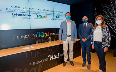 La Fundación Vital, en colaboración con el Instituto de Investigación Sanitaria Bioaraba y la UPV/EHU, pondrá en marcha 14 proyectos de investigación sobre la covid-19, a los que destinará un total de 312.000 euros. Los estudios se centrarán en cuestiones como nuevas terapias respiratorias o la posibilidad de que la vacuna de la gripe proteja ante futuros brotes de covid. A raíz de la aparición del coronavirus, Fundación Vital lanzó una convocatoria extraordinaria de ayudas para paliar los efectos de la pandemia en Álava. Bajo el lema ‘Ayudar a quienes ayudan’, el programa especial de ayudas ha alcanzado una cifra global de 787.000 euros, y