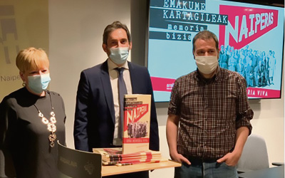 Cultura Álava programará espectáculos para 600 personas a través de Kultura Bizia gunea La asociación alavesa ‘Kultura Bizia’ ha presentado ‘Espacio Kultura Bizia Gunea’, el lugar en el que agentes culturales del territorio podrán programar, con el apoyo de las instituciones y de Laboral Kutxa, entre otros patrocinadores, todo tipo de eventos culturales para 600 personas, desde el presente mes de abril y hasta finales de septiembre, cumpliendo todas las medidas sanitarias y de distanciamiento social. En la imagen, y entre otras autoridades, el viceconsejero de Cultura, Andoni Iturbe y la diputada da de Cultura, Ana del Val. El Libro