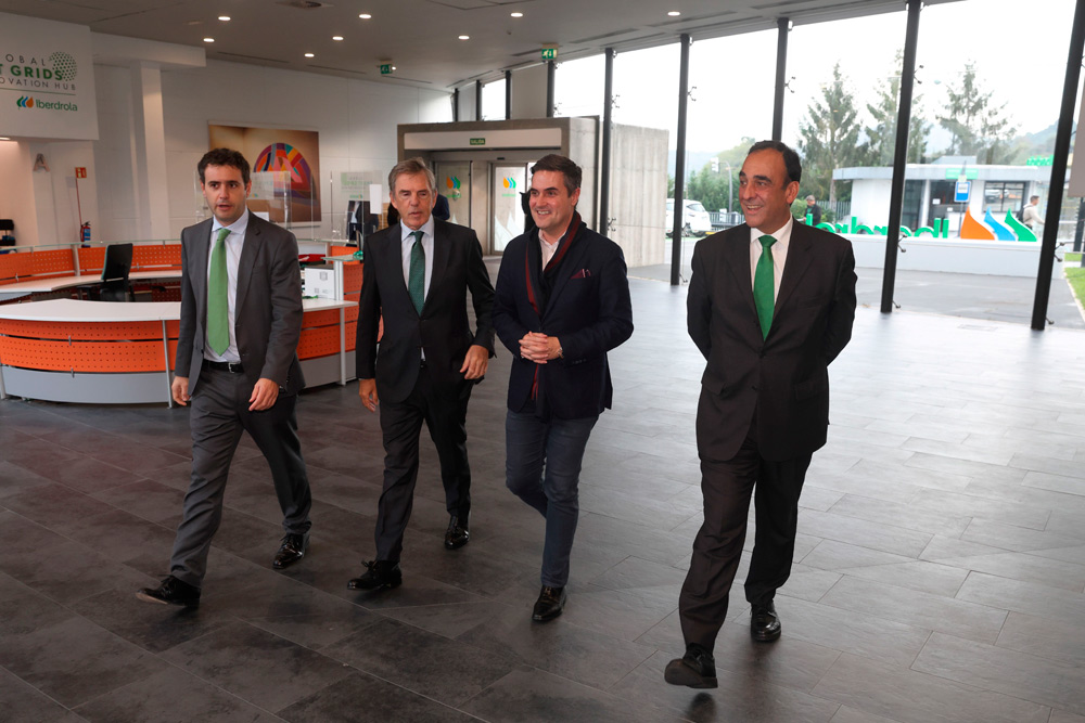 Mikel Jauregi, consejero de Industria, Transición Digital y Sostenibilidad, ha visitado en Bilbao la sede central de i-DE, distribuidora del grupo Iberdrola, desde donde se vertebra la red de suministro eléctrico y donde se ubica el centro mundial de distribución de redes inteligentes. Allí ha sido recibido por Asís Canales, delegado de Iberdrola en Euskadi; Javier Arriola, director de la Región Norte de i-DE, y David Martínez, director de Iberdrola Energía España.Durante la visita ha podido comprobar de primera mano como, gracias a las más innovadoras tecnologías, desde esta sede se puede proceder la recuperación inmediata de forma telemátic
