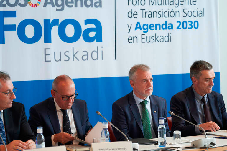 El Foro Agenda 2030 Euskadi (Foro Multiagente de Transición Social y Agenda 2030) ha celebrado este martes su tercer plenario, en un encuentro, presidido por el lehendakari Iñigo Urkullu, que ha tenido lugar en el Palacio Euskalduna, en Bilbao. Este foro es el órgano que canaliza la Gobernanza compartida de la Agenda 2030 entre las instituciones vascas y los agentes sociales.Además del lehendakari, forman parte de este órgano todos los Consejeros y Consejeras del Gobierno vasco, las tres Diputaciones Forales, Eudel y los Ayuntamientos de las capitales, los rectores de las tres universidades vascas, una representación de las entidades del terc