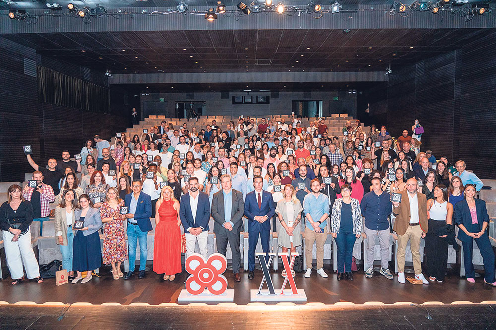 Azkuna Zentroa fue escenario de una nueva edición de la ‘Gala Bilbao Emprende’, un acto en el que el Ayuntamiento de Bilbao reconoce las iniciativas empresariales puestas en marcha durante el año. El acto distinguió a las personas emprendedoras que durante el año 2023 crearon 160 empresas en la Villa, con el asesoramiento y apoyo personalizado del Centro de Emprendimiento de la sociedad municipal Bilbao Ekintza.El concejal de Desarrollo Económico, Comercio, Turismo y Empleo del Ayuntamiento de Bilbao, Xabier Ochandiano, presidió el acto de entrega de la ‘Baldosa de Bilbao’, que premia el esfuerzo y aportación a la dinamización económica de la