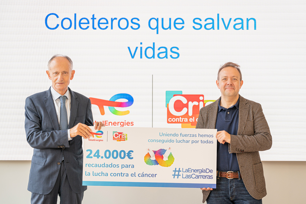 TotalEnergies ha realizado una donación de 24.000 euros a la Fundación CRIS contra el cáncer, entidad de referencia en la investigación contra esta enfermedad, con el fin de apoyar la investigación oncológica en España. La compañía multienergías culmina así la acción solidaria que realizó en las nueve Carreras de la Mujer de este año, por la que se comprometió a donar un euro a la organización por cada corredora que entregase su coletero tras la carrera.El mecanismo era sencillo: cada corredora que dejase su coletero en el stand de la compañía en el circuito Central Lechera Asturiana Carreras de la Mujer recibía otro a cambio con los colores