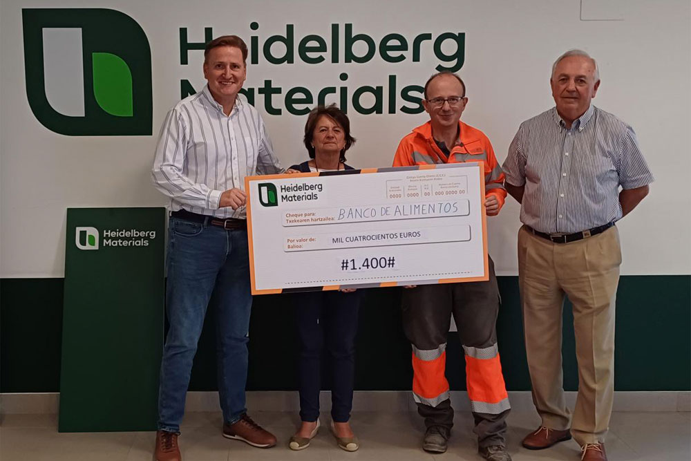 La donación de Heidelberg Materials que se ha realizado coincidiendo con la Semana de la Seguridad, permitirá la compra de lotes de comida para alimentar a más de un centenar de personas durante un mes.Esta acción se enmarca en el proyecto “Seguridad Solidaria” que la fábrica de Añorga lleva a cabo desde hace una década y que pretende lograr la implicación de los colaboradores de la fábrica en la mejora de los índices de siniestralidad y beneficiar a las personas más necesitadas.