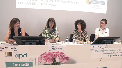 “Tener una plantilla satisfecha genera beneficios de imagen, de identificación, de compromiso, de eficacia y de retención del talento”, afirmó la directora de Familias e Infancia del Gobierno vasco, Irune Muguruza en la jornada sobre ‘La conciliación como herramienta clave para atraer y retener el talento’, organizada por APD en el Palacio Euskalduna de Bilbao. En su intervención, la representante institucional aprovechó para ofrecer los detalles de la nueva línea de ayudas que, con un importe total de 392.857,15 euros, busca ayudar a las empresas a elaborar un diagnóstico y un plan de acción en materia de conciliación. La inauguración del