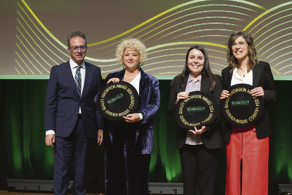 Elena Guede, vicepresidenta de Estrategia de Sostenibilidad de Cementos Lemona (CRH), Inmaculada Ortiz, directora general de Ortiz Aspizua Hermanos, y Susana Andrés, directora del área comercial de Laboral Kutxa, fueron galardonadas en la XVIII edición del premio empresarial que concede la Asociación de Empresarias y Directivas de Bizkaia (AED). Unos galardones que contaron con la presencia, entre otras, de la diputada general de Bizkaia, Elixabete Etxanobe, y de Jaione Ganzarain, viceconsejera de Tecnología, Innovación y Transformación Digital, quien destacó la “fundamental labor de AED para visibilizar a las mujeres en el mundo empresarial”