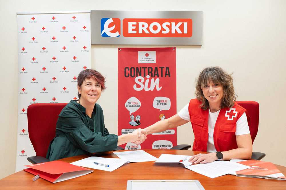Eroski y Cruz Roja Española han firmado un acuerdo de colaboración para promover la inserción laboral de las mujeres víctimas de violencia de género. El convenio ha sido rubricado por la responsable autonómica de empleo de Cruz Roja Española, Teresa Romero y la responsable del Observatorio de Igualdad de Eroski, Marta Carazo en el marco del 25-N, Día Internacional para la eliminación de la violencia contra la mujer.El objetivo del acuerdo es promover la colaboración conjunta que facilite la mejora de la empleabilidad de las personas que tienen menos oportunidades de acceso al empleo, especialmente mujeres víctimas de violencia de género, ince